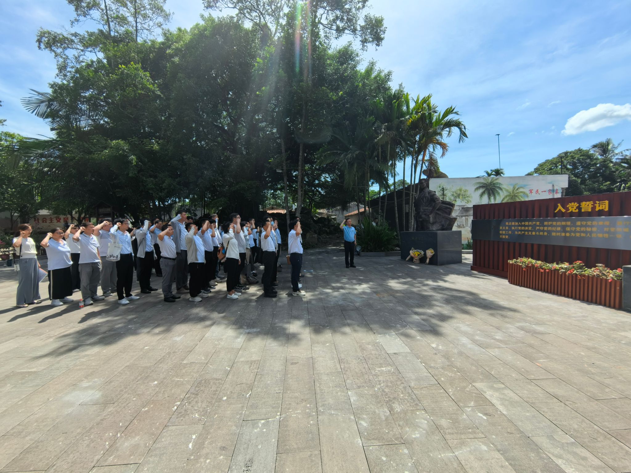 为庆祝建党103周年,巩固拓展主题教育成果,扎实开展党纪学习教育,继承发扬党的优良传统,引导全体党员干部更加坚定理想信念、牢记初心使命,强化公司干部教师责任担当,7月1日,公司党总支联合海南省生态环境厅机关党委、应对气候变化与科技财务处党支部、海南省财政厅自然资源和生态环境处党支部、海南老员工态公司党总支赴屯昌南田起义旧址组织开展“喜迎建党103周年,共建国家生态文明试验区”主题党日活动,活动由海南省样板党支部公司教工第二党支部承办。