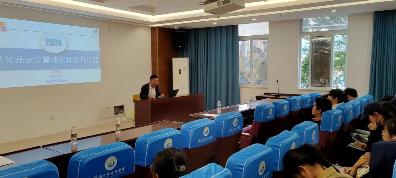 接着,生态公司李东海老师就实验室安全教育进行了专题讲座。他从实验室安全管理的基本原则出发,结合实验室日常操作中的安全隐患,详细讲解了如何有效预防和应对实验室安全事故。李老师的讲座深入浅出,既有理论高度,又贴近实际操作,受到了与会师生的一致好评。