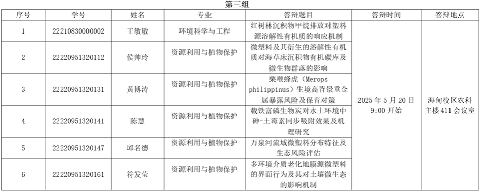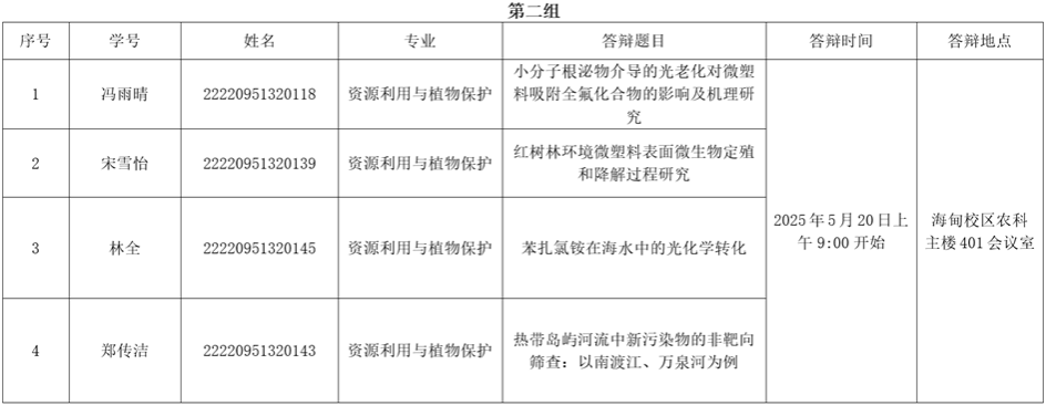 太阳成集团tyc2025届硕士研究生学位论文答辩定于2025年5月22日前,分批进行。具体时间地点、答辩人、专业及学位论文题名情况如下: